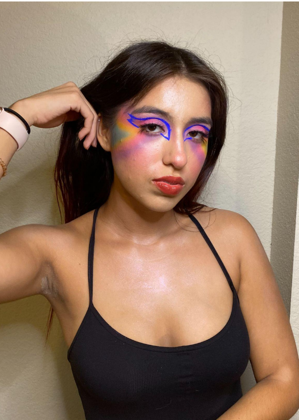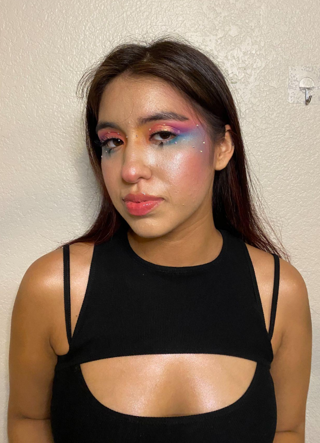 In high school, I got really into eyeshadow—my go-to look was a rainbow eye makeup look. In college, I’ve helped out on shoots as the makeup artist on set. In my daily life, I love doing glittery, colorful makeup looks on myself just for fun.