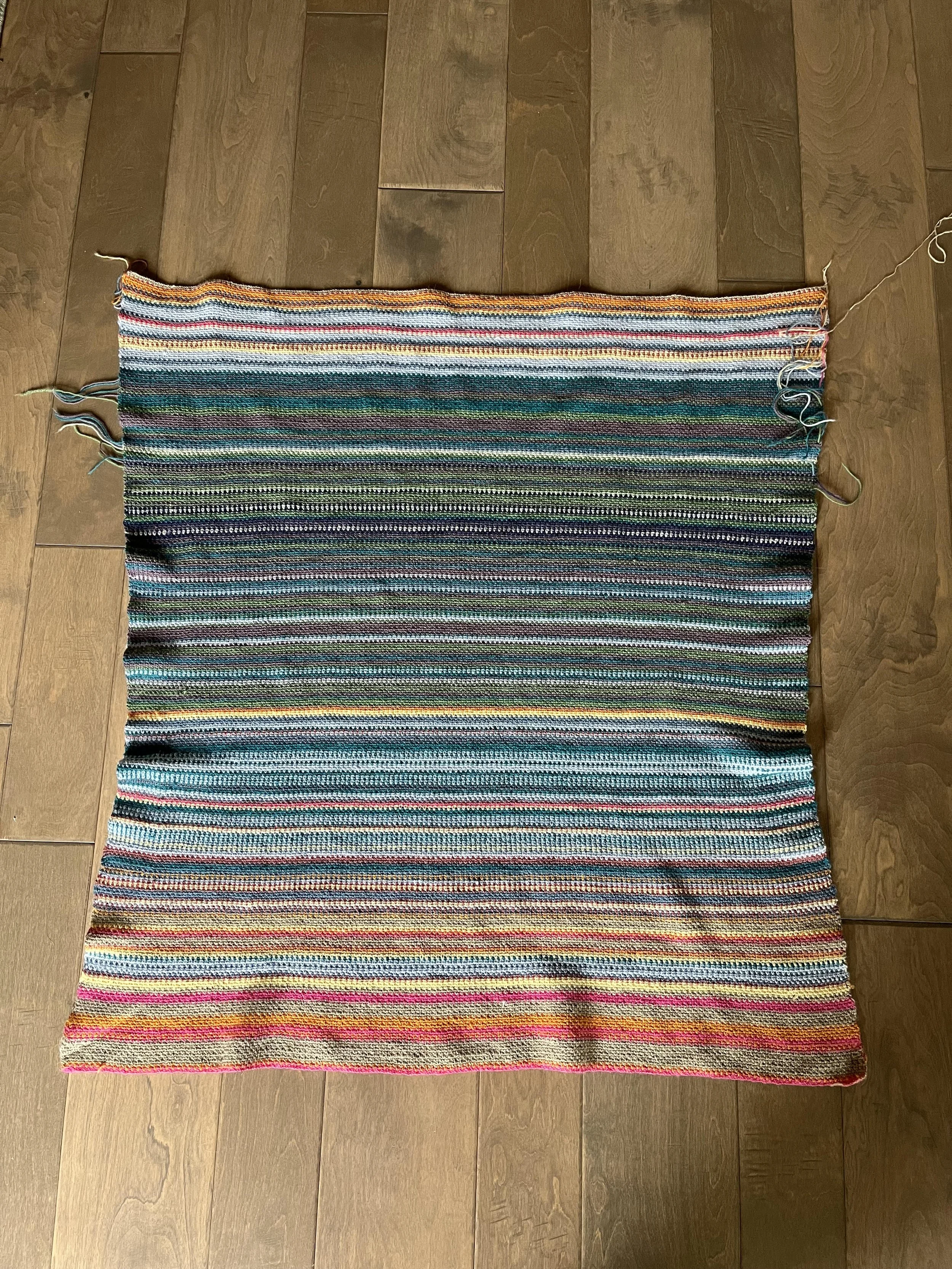 Stop putting dark colors together in the summer because Texas is summer for about 8 months. The blanket ends up with way too much of it just being dark blue, dark purple, and dark green next to each other