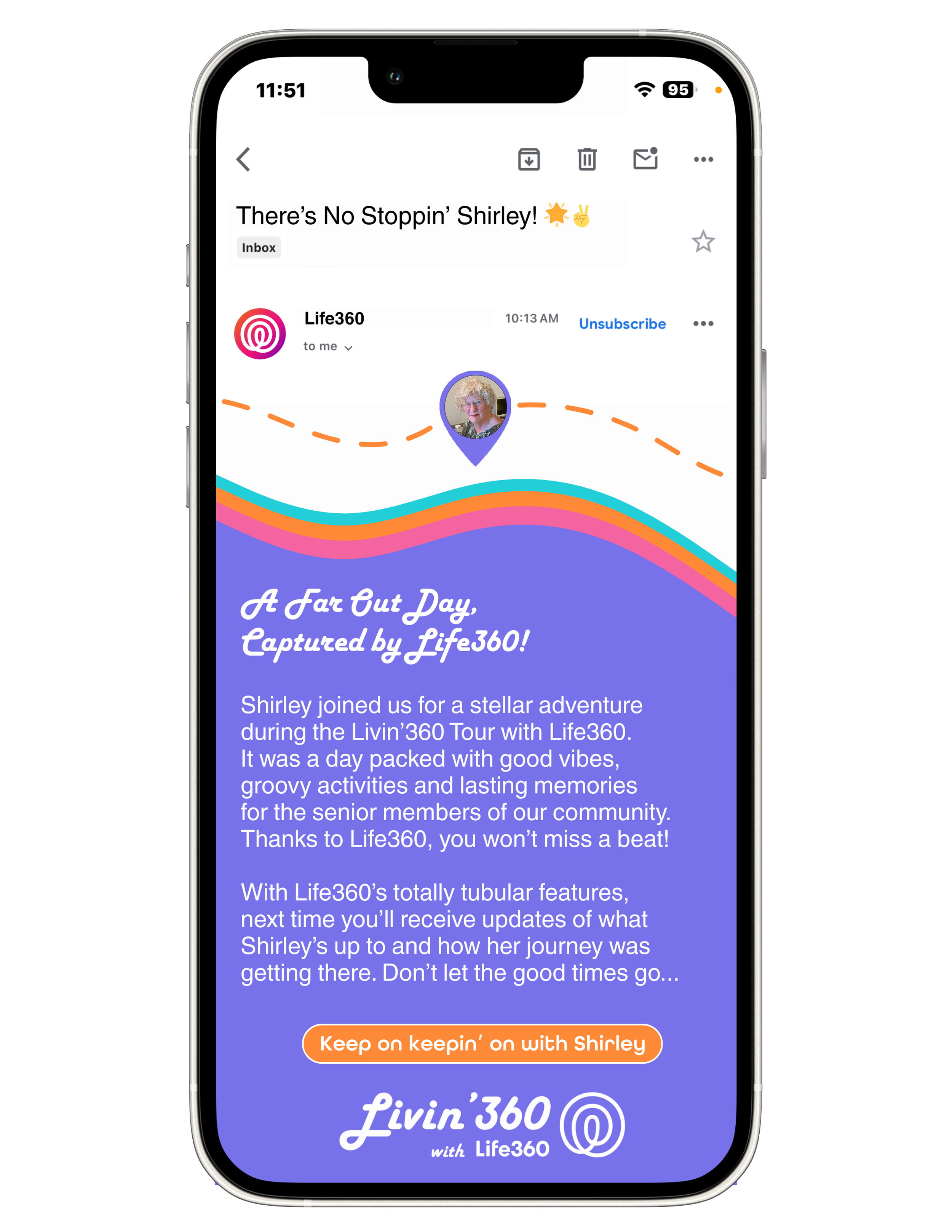 After the event, adult children or family members of the active seniors will receive an email from Life360 detailing their route and events, encouraging them to download Life360 Premium.